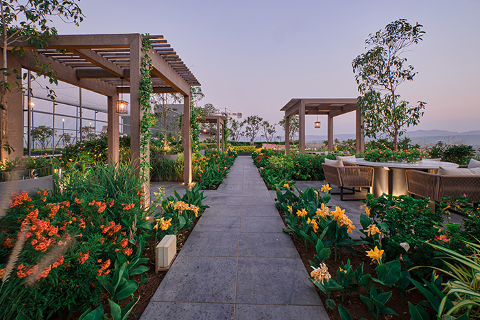• Energy-efficient façades, rooftop solar, and passive cooling strategies